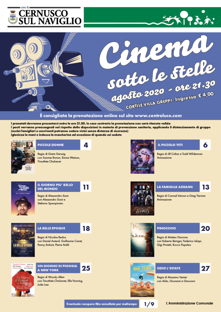 Cinema sotto le stelle – luglio e agosto 2020