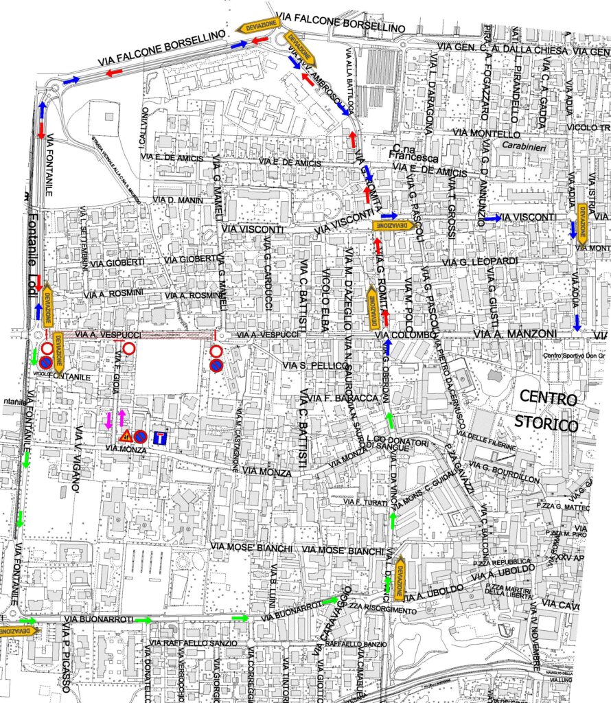 Al termine, i lavori proseguiranno lungo via Manzoni/Colombo con un senso unico alternato regolato da movieri.