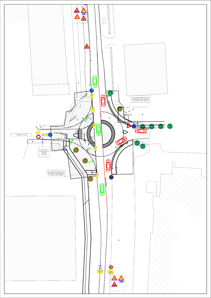 Dal 28 agosto 2023 – I lavori sulla nuova rotatoria all’incrocio tra via Brescia e Torino entrano in una seconda fase, con alcune importanti modifiche alla viabilità temporanea:
