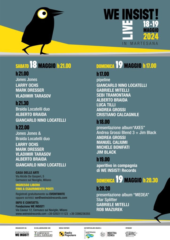 Sabato 18 e domenica 19 maggio WE INSIST! LIVE in Martesana