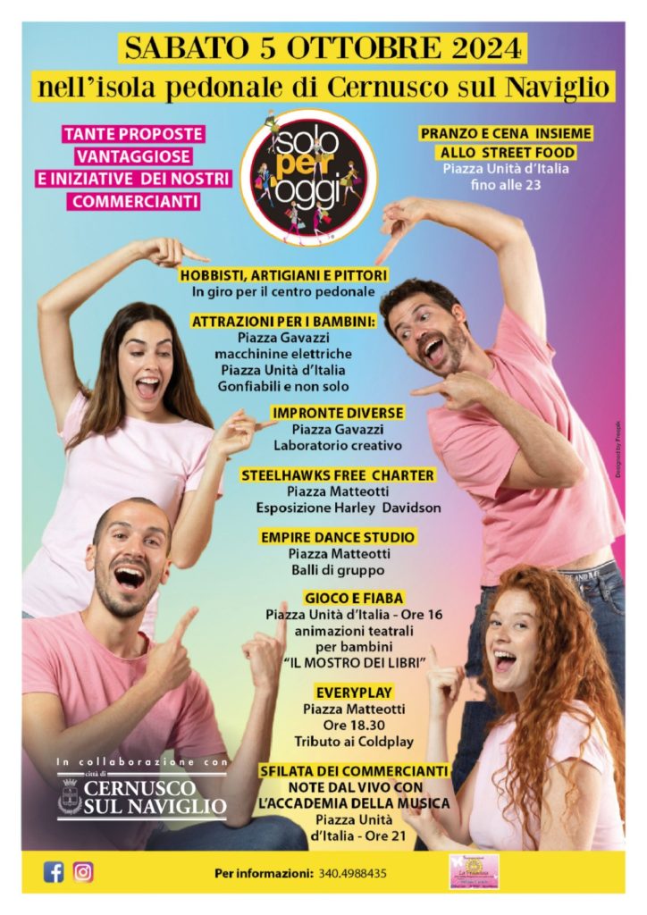 Sabato 5 ottobre 2024 tornano le occasioni del ‘Soloperoggi’, da mattina a sera shopping, street food, grandi occasioni e attrazioni per tutta la famiglia!