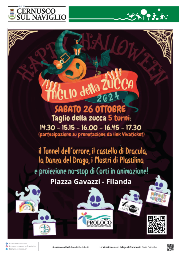 Sta per tornare sabato 26 ottobre l’appuntamento “da paura”, con l’intrattenimento per bambini a Cernusco sul Naviglio, organizzata con Pro Loco Cernusco Sul Naviglio e con la collaborazione di Impronte Diverse e i Comitati Genitori degli Istituti Comprensivi Margherita Hack e Rita Levi Montalcini. Piazza Gavazzi e la Filanda sono pronti per voi!