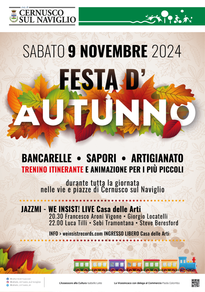 Ritorna la terza edizione della Festa d’Autunno: sabato 9 novembre 2024 resta in città, per i mercatini dell’artigianato e dei sapori, l’animazione per famiglie e la grande musica delle colonne sonore.
