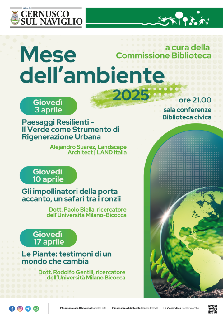 Dal 3 al 17 aprile, tre incontri in Bilblioteca dedicati all’ambiente segnano il ritorno per il secondo anno della rassegna di approfondimenti con esperti e specialisti di tematiche legate alla sostenibilità ambientale. Vi aspettiamo già dal prossimo giovedì, per la prima delle tre serate inserite nella rassegna dedicata all’ambiente proposta dalla Commissione Biblioteca insieme con gli Assessorati all’Ambiente e alla Cultura.