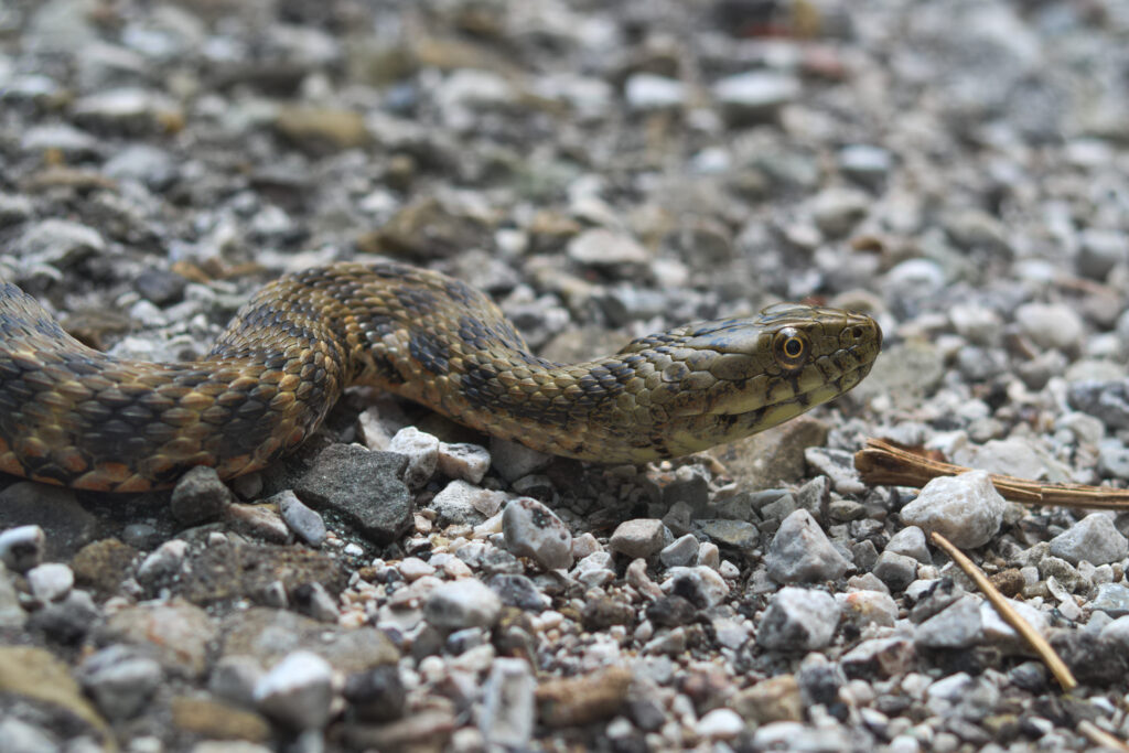 - prestare particolare attenzione ai percorsi in luoghi ben esposti al sole come pietraie, muri a secco, ruderi diroccati, dove i serpenti si riposano