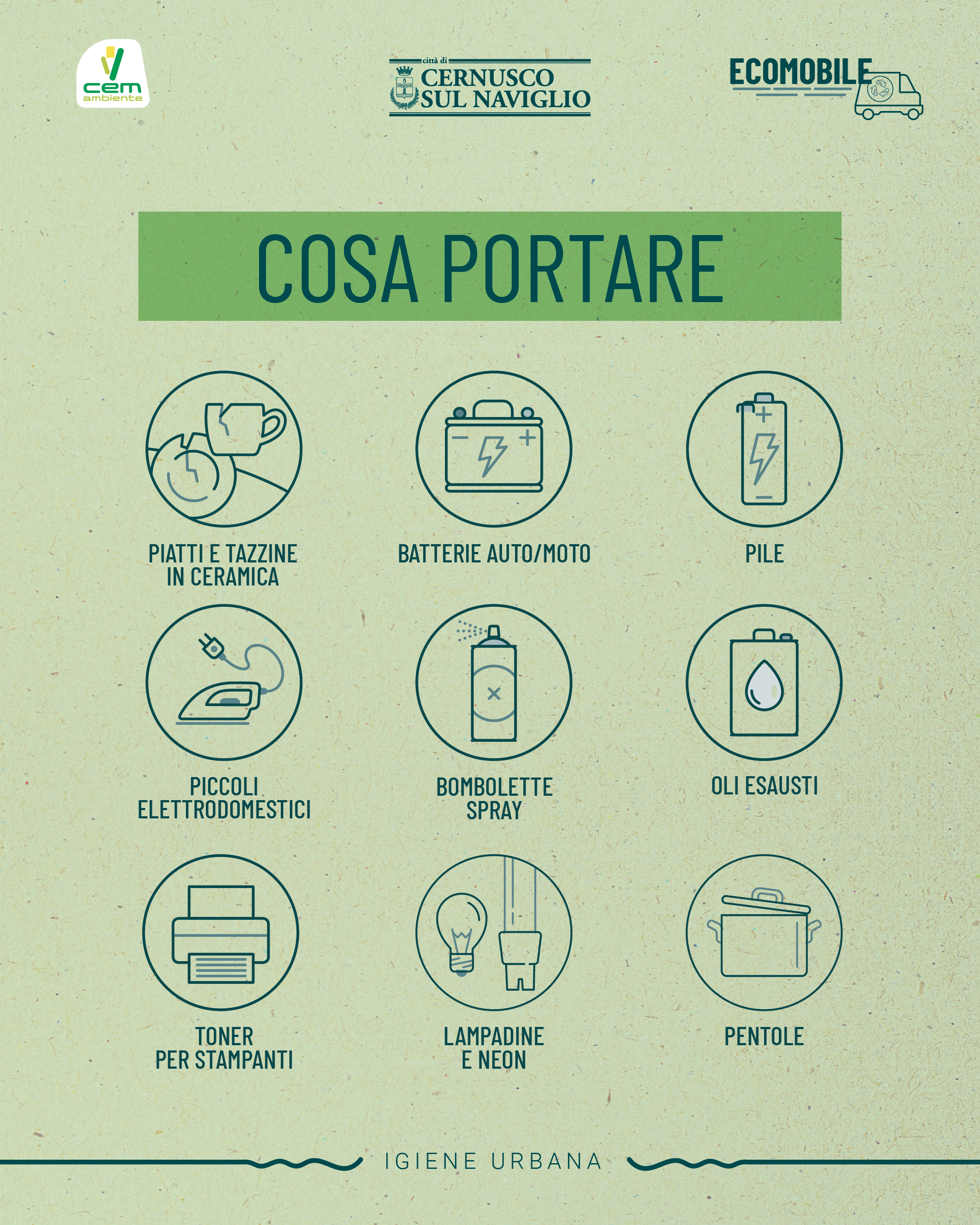 L’Ecomobile è una stazione viaggiante attrezzata per la raccolta, lo stoccaggio e il trasporto di piccole quantità di rifiuti speciali e pericolosi che dovrebbero essere conferiti alla piattaforma ecologica. Dopo la sperimentazione iniziata nella primavera 2024, alcune modifiche ai luoghi di ritiro: un nuovo giorno, il mercoledì e un nuovo punto di ritiro, il mercato di via Buonarroti, in sostituzione del parcheggio di via Marcelline. Confermato l’appuntamento durante il sabato durante il mercato di via Volta. In entrambi i casi estesi gli orari di presenza già dalle 8:00 del mattino.