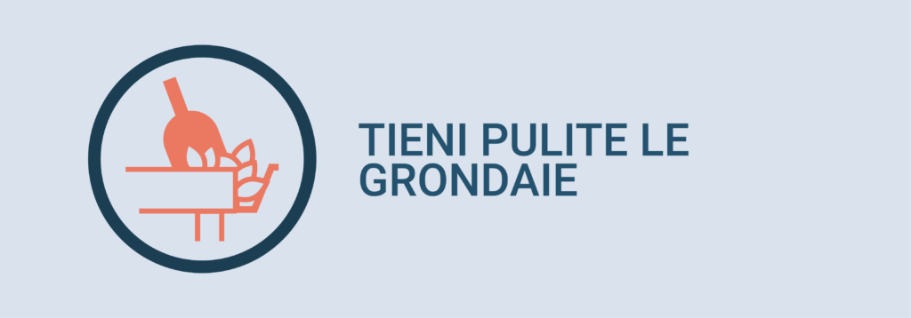 - ispezionare e pulire periodicamente grondaie, condutture, caditoie e tombini presenti in giardini e cortili controllando che non siano otturati, mantenendoli sempre efficienti, evitando il ristagno d’acqua e accertandosi che scarichino correttamente